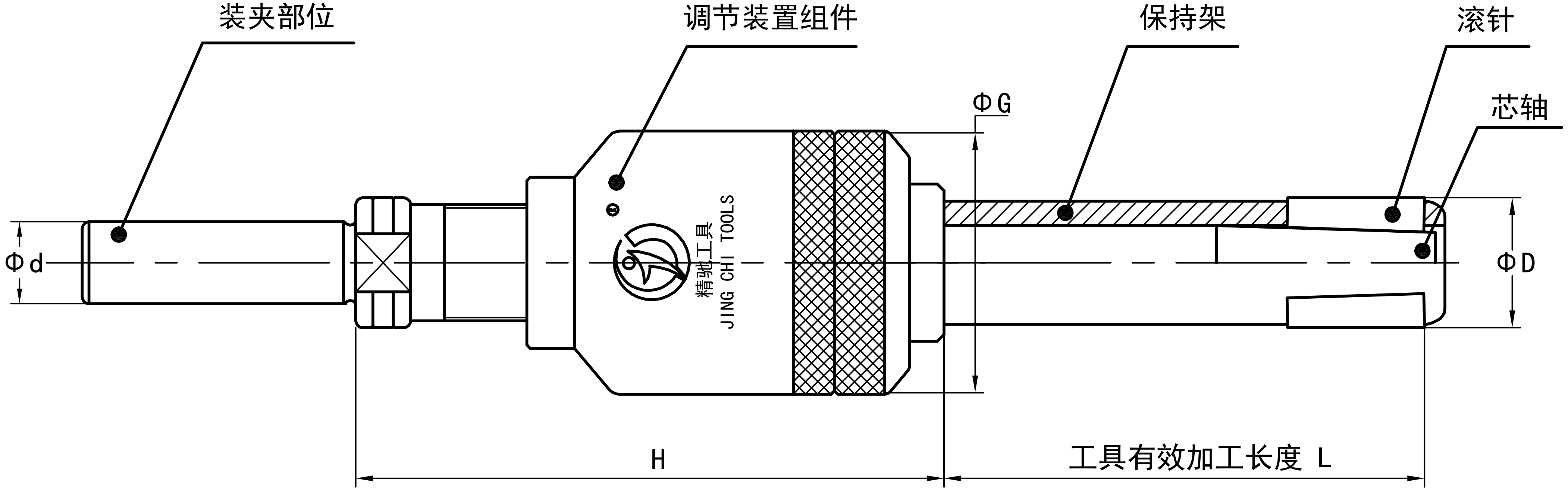 加工孔徑Φ40以上的滾壓刀,由于調(diào)節(jié)組件的外徑比加工孔徑小,可通過(guò)加長(zhǎng)柄部尺寸的方法增加加工長(zhǎng)度。